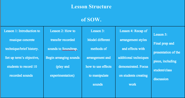 Figure 1: Taken from the authors ‘Making Music using Recorded Sounds’ unit plan